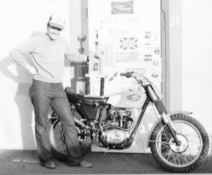1965 BSA 250cc Model C15 Scrambler Built & Modified for Motocross Competition. Owned and Raced 1978-1998 by Eric Tucker. Sponsored by West Coast British Racing, Livermore, CA. C15 MX story – Part 1, By Eric Tucker Some time in September 1985, Mike reminded me about the second Annual Dick Mann Vintage Dirt Bike Rally which was coming up on Sunday, October 20. I had a pile of various C-15 and B-25 parts lying around and I got a hankering to build some of it into something to race in the motocross event at the Rally. There were only about four weeks until the Rally but I felt confident that I could get it built and running within this schedule. I had what I believed to be a good engine, and the one to have if any for this purpose – a 1965 C15-S “scrambler” motor with the “side mounted” points (instead of that silly little Lucas distributor behind the cylinder) and the slightly beefier transmission and starter gear. After checking it over, cleaning it up and assembling it, I put it into a BSA-made Triumph TR25-W frame, which was essentially identical to the 441 Victor frame and very similar to the older C-15 off-road frames. The rear wheel I used was a narrow-brake quick-change BSA with a W-3 18” rim laced to it. The trick here was I needed a sprocket for a #428 drive chain to work with the only countershaft sprocket I had. I found a nice aluminum sprocket, 52 teeth as I recall, and went hence to Orchard Supply Hardware and bought a fly-cutter. After carefully lining the sprocket up on my drill press and cinching it down I bored the ID of the sprocket to fit the BSA brake drum flange. It worked – the sprocket fit nicely with practically no runout. I worked out other details, too – like mounting the SuperTrapp silencer/spark arrestor to the C-15 pipe (effected with a short, bent piece cut from a VW header). I fitted a TR-25W oil tank, its side-cover Oddie clips being ground off to simulate a later Victor style tank (I really didn’t like the B-25 fiberglass oil tank anyway), and got the oil plumbing and ignition wiring done. With the Rally less than a week away I still didn’t have a front wheel. That is to say, I had one I didn’t want to use; an 18-incher from an early BSA B-25 with a street tire on it. Somehow I’d gotten it into my head that a 19-inch rim would be the “period” setup since a lot of the pictures I’d seen of off-road events from the early ‘60’s seemed to show front wheels just perceptibly larger than the rears, usually shod with what were called “trials” or “universal” tread tires. So I unlaced the drum, painted it and hauled it over to Chris Quinn’s Wheel Works. Chris sold me a 19-inch 40-hole rim, an ancient Dunlop knobby, and some spokes. He let me use his spoke threader and wheel stand to build the wheel and his truing stand to get it round and straight. Now I had a roller, but less than two days to make it a runner. I got the rest of the bike buttoned up with a stock B-25 fiberglass tank, a B-25 steel rear fender with the taillight holes filled with glass cloth and epoxy, and a low-mounted (again, for that “period look”) plastic front fender originally from a Yamaha XS650. I painted the fenders Ford Truck Medium Blue to match, more or less, the blue and white B-25 tank. One day left, now. I managed to get a reasonably healthy spark out of the infamous Lucas “Energy Transfer” ignition system, and borrowed the 1-1/16” Amal Monobloc carb from my street B-40. A splash of gas in the tank from the Shell station around the corner, a little push on the carb tickler button, a tentative push on the kick start lever, and… …LIFE! The thing started on the first kick. Thrilled, I snicked it into first and took my first ride, back and forth on the community driveway for the row of duplexes where I lived at the time. It’s now about 2:00 PM the day before the Rally, and I thought a shakedown ride was in order. I decided I’d try to get it over to Mike’s shop by riding along the defunct railroad tracks, which passed through both Pleasanton and Dublin. With no troubles, I made it – but Mike was on call at that time driving a tow truck and had the shop closed! Oh well – so I started doing a few “practice” laps in the ad hoc track in the then-vacant field behind Mike’s shop. A couple times around, and I see Mike driving up. I think he was surprised to see me, since none of us were really sure that I’d have the bike ready. But ready enough it was, and we loaded it on Mike’s trailer with his Honda SL-100 and his BSA B-50. |