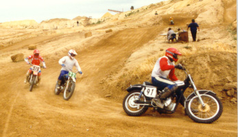 Above: Eric shows off his hardware! Below: Sandhill MX 1989; #22 Eric on the now modified C15, #2 Michael Moore on the WCBR-Ducati 250, #21 Mike Green's C15. |