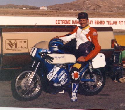 Left: The 250 with blank number plates is #990/1 This went to NJ in 1990. It was later in Cycle World Magazine. It was later sold. Below: Testing at Willow Springs; In February '94 WCBR tested here prior to Daytona '94. This is Valley Machine's Earl Minkler (who does WCBRs machine work) aboard the a 350 we built for a Michigan customer. Earl raced the bike at Savanna -where he won the SoS race- and at Daytona that year in both 350GP and Sound of Singles. |