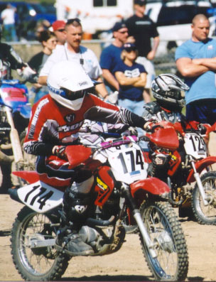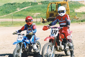 The Kids Go Racing... Richard M. Green (born 4/3/89) and Peter Green (born 6/13/94) grew up going to the races. In 1999 Michael bought them a PW80 Yamaha, on which, they learned to ride. Christmas 2001 Richard awoke to find a new Honda XR100R in the living room! Since that time the boys have been learning, having ridden at Carnegie Cycle Park (Livermore), Metcaf, the Nevada Desert outside of Reno, and numerous trips on Friday night to Sandhill Ranch and the TT Course. On March 6th, 2004 they competed in their first sanctioned competition, The "Old Crow" Cross Country event at Carnegie. |