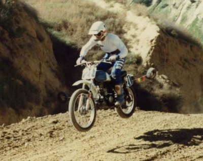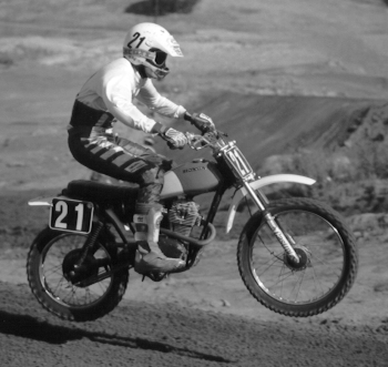 If you’ve been reading the “Rob Whitaker” Honda page, you’ll know that Rob donated this bike to WCBR in the early 1980s. Our big idea of going “spec road racing” with a Honda 100 went in the tank, and when the CVRG rules included a 125cc Sportsman MX class, we went to work building an engine for the 1985 Dick Mann’s Vintage Dirt Bike Rally & CVRG series to follow. Other than the 125cc engine, the bike is the way it was when Rob rode and raced it in Dublin throughout the 1970s… complete with lay-down rear Koni’s. The two pictures to the right are from Sandhill in 1986, Mike Green (#21) won his class that day. In 1986 he'd win the first of two CVRG Sportsman 125 MX Championships on the Honda (and yes, even beating the 2-strokes!). Below, after being overahul and repainted in the WCBR Blue/White combo, Mike Green wins at DeAnza MX in '87. Mike still rides & races the Honda now again, winning the night MX at Hanford in 2003 (Classic 125) and finishing second in 2004. The bike now and again appears at Sandhill Ranch for Friday night TT practice.... eating up CRF150 Honda's in the process! |