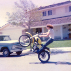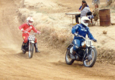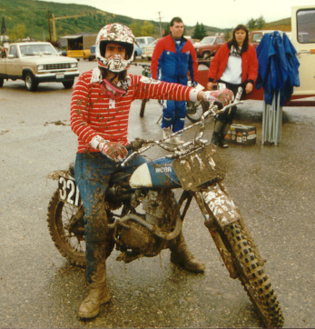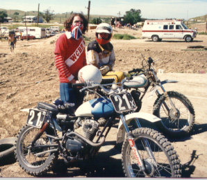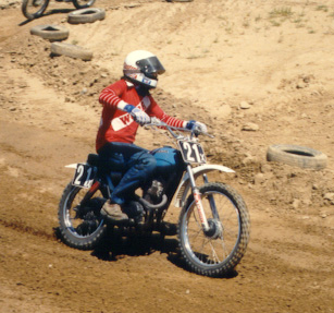 It’s 1973 and both Rob Whitaker and Mike Green end up buying 1971 orange SL100 Honda’s on the same week. While Mike rides his on the road (and off-road now and again), Rob strips his of all lights and equipment and heads for “the Lot” then up to Hidden Lake. In 1975 Mike sells his SL100 to buy a car, while Rob continues to ride his for some years… that is until he bought and built a Champion framed XL250. During the SL100’s life it would be repainted Yellow with Black stripes, and the rear suspension would be modified to take “lay-down shocks” (with Koni’s). Over its life the poor SL100 engine ate a cam or two… the final time the engine was removed and never seen again. The Honda lay in the corner of the Whitaker garage for some time… that is until Mike talked of building a “150 Spec racer” for AFM road racing. The basis of this class was Honda SL100/125s. With that said, Rob donated the remains of the Honda to Mike. The Honda would now reside at WCBR in Dublin, along with a bunch of other SL100/125 parts the shop had been buying up. Just as the “spec racer” project began, it died. The Hondas salvation would be the CVRG and its new Motocross series. With that in mind, Mike Green built an SL125 engine from the mass of parts, and had the Honda ready for the 1985 Dick Mann Vintage Dirt Bike Rally. On the other SL125 page there is a picture of the Honda in its Yellow/Black paint job (with Mike Green racing it at Sandhill). The two upper pictures on the right shows Rob Whitaker getting reacquainted with the old SL100 (now a 125cc) at Sandhill MX in 1989. Rib would go onto finish 3rd in overall points for 1989. Below: Rob at Steamboat Springs 1989. Below-Right: Rob (#321) at Sandhill National 1990. Bottom: Rob on the Honda... 1977 |