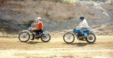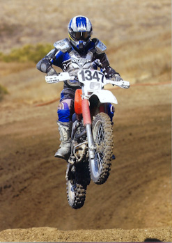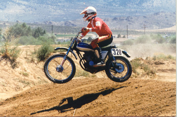 Left: Now with the Honda overhauled... a new frame from a 1970 model -laydown shocks now gone- and a 1" over swingarm & Works Performance shocks, stock fenders and side panels ... the bike was transformed into a "Classic 125" machine. This looks like Carson City, NV in 1996.... Rob's final season was 1997. Keeping Honda single racing in the family.... Below: Rob's son, Matt... Hard at work on his XR200 Honda during a Cross Country event in 2003. |