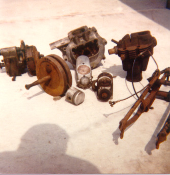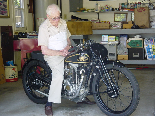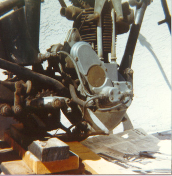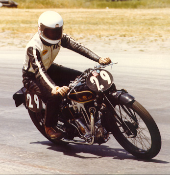 It's 1966, Richard Green is in England on company business, while there he looks for a pre-war motorcycle to purchase. He ventures to an old farm to look at an Excelcior grass tracker... only to find that the day before the farmer needed a "piece of pipe", he'd cut the frame in two! On a tip from a co-worker he buys a 1929 Sunbeam sight-unseen for $120.00 The company arranges shipping to San Francisco. The upper four pictures show what we found in the crate upon opening it. With all the other projects going on at that time; an Aston Martin DB3S Coupe & 1929 Bentley 3-Litre, the Sunbeam would have to wait. It wouldn't be unitl 1975 that it would again jump to life. It's first outing would be the C.A.M.A. event at Visalia where it would win "Best Road Racer" award (not, once, but twice!) |