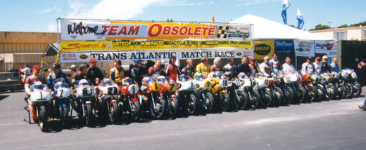 Fernley, NV., September 18th: During the VMOTO event at the new tracked, billed as the Reno-Fernley Raceway, Mike Green took the 350 Ducati out once again. Though it was a combined race, the Saturday event saw the WCBR-Ducati pull the holeshot and motor off ahead of an H2 Kawasaki! Though the Kaw soon passed the Ducati, the Ducati held its own, finishing 2nd overall and First in class. "It was great to ride the 350 in anger again, so to speak, and hearing that wonderful 350 megaphone bark at red-line was a sound I have missed. It does take a bit more effort to ride the 350 fast than it does to ride the T140, the later having disc brakes and more power, you don't have to work the Triumph so hard. I really enjoyed riding the 350 today, but tomorrow I'll be on the Triumph for the points race", said Green after the race. On Sunday? The Triumph won! |