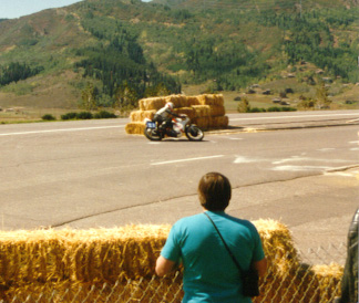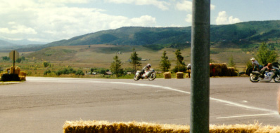 Right: Mike Green and the 350 dominated the 500-Sportsman race at Steamboat 1989. In 1991 MG would win the 500-Sportsman race with his 250! Below: Mike takes the lead to win 350GP... Below-Right: Roper leading Green... before the pass and victory.... |
