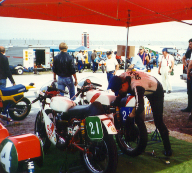 1989 Season 2/7 Test Sears Point 3/6 350GP Daytona 2nd 3/6 500SP Daytona First 3/6 Premier Daytona 5th 5/14 350GP Sears Point First 7/16 350GP Sears Point 3rd 7/22 350GP Westwood DNS (ignition problem) 7/22 500GP Westwood 11th (ignition problem) 8/13 350GP Sears Point First 9/9 350GP Steamboat First 9/9 500SP Steamboat First 9/9 Premier Steamboat 2nd 1989 AHRMA-West 350GP Champion - Mike Green 1989 AHRMA-West 500 Sportman Champion- Mike Green 1989 AHRMA National 500 Sportsman Championship-3rd. |