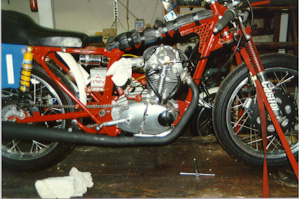 1991 wasn't a good season for the 350, or was it? Sure we won two championships, but had we not had the 250 to fall back on, we wouldn't of won those... the 350 had some troubles. For '91 AHRMA had impossed a new rule, some called it "another Mike Green rule!", This "new rule" was to prevent bumping a 250cc machine into a 500cc class. Hummm. Also, colored number plates were dropped in favor of white ones with black numbers (remember this when reading).. Unlike years past, the weather at Daytona was just plain nasty... cold winds and later spits of rain, making it one miserable place to be. In the 350GP race Mike Green grabbed the lead from the start and motored away... Dave Roper and Craig McLean both in hot pursuit. For 10 laps Green lead the pack, but with two turns to go the 350's shifting problem, the one we thought we'd cured, reared its ugly head. Just when Green needed all the gears, he instead found a box of nothing... Dave & Craig motored past to win, leaving our man 3rd. In the 500-Premier race, which was some 18 laps, and if memory serves, they showed an oil flag (and pointed up - for rain) as they dropped the green. All was ok until half way down the banking when the pack ran into rain and wet road... Green dove for the bottom and missed the top four machines going down. By half way the 350 was up to 3rd place, where it would finish. Not bad at Daytona for a 350. AHRMA went to Firebird Raceway (AZ) for the first time... it was/is a fun track. Craig McLean and Mike Green battled the whole distance in the 350GP race, Craig won. In the Premier event the 350 was out front until the rear axle broke near the end of lap one, thus a DNF... there was also a small fire! No damage done. At Las Vegas in August the 350 was in top form, winning both the 350GP and 500-Premier hands down!. Steamboat Springs, our favorite event of the year, would find the 350 side lined for the day. During the warm-up lap for the 350GP race it threw the chain, Mike stopped and refitted and continued around, only to have it come off again and damage the cases! A motorized turn worker gave Green a ride back to the pits to get another bike, the 250. Since the 350GP & Classic-60s machines had already gridded (or process of), Green would start from the pit lane on the 250 (Bret Morshead was on the grid with WCBR9 350) after all machines had cleared the grid. Green took off as instructed and proceeded to make his way throught the pack. At the bottom of the hill he caught and passed Morshead on lap 5 (bret later said to Mike, "I thought you'd lappped me!" In the end Green would take 3rd in the 350GP race (then go on to win the 500-Sportman race & take 2nd in the Premier race in driving rain & hail!, and all on the 250). Now, remember the new number plate rule? Well, so did we. Had we still used colored number plates there would of been no way we would of gotten away with this hat-trick. As we were leaving Steamboat (in the pouring rain), Jack ran over and asked Mike, "which bike were you riding in the Premier race?" Knowing that both bikes were now cold & wet, Mike replied, "you pick one" and smiled as he drove off. So much for white number plates eh? Read the rest of the story at WCBR5-1991. |